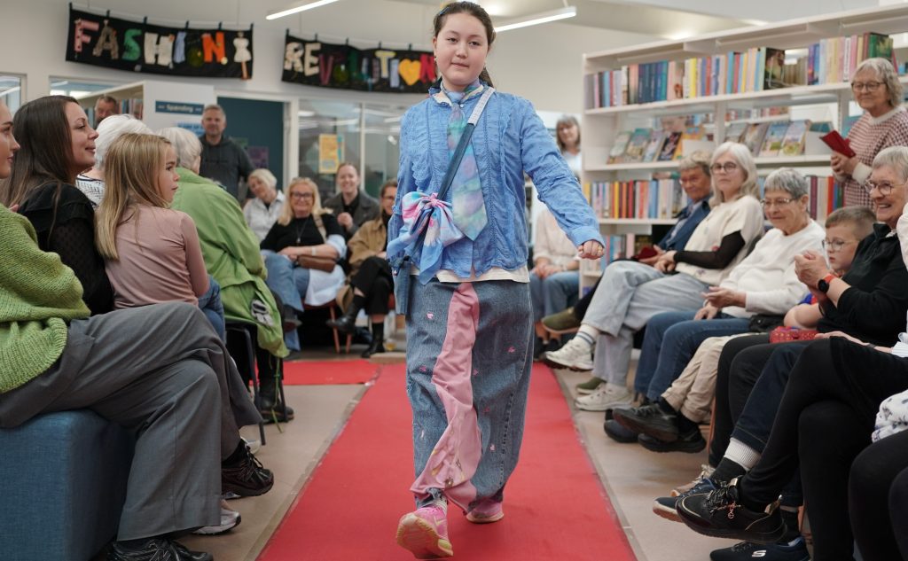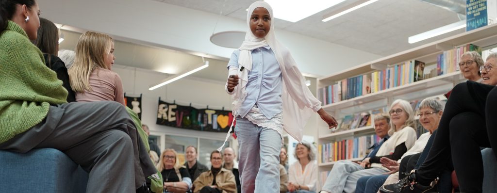 Børn, unge og ældre gik model i upcyclet og byttet tøj på biblioteket i Kerteminde – og budskabet var klart: Vi kan bruge det, vi allerede har