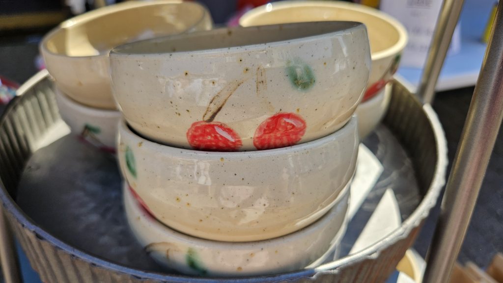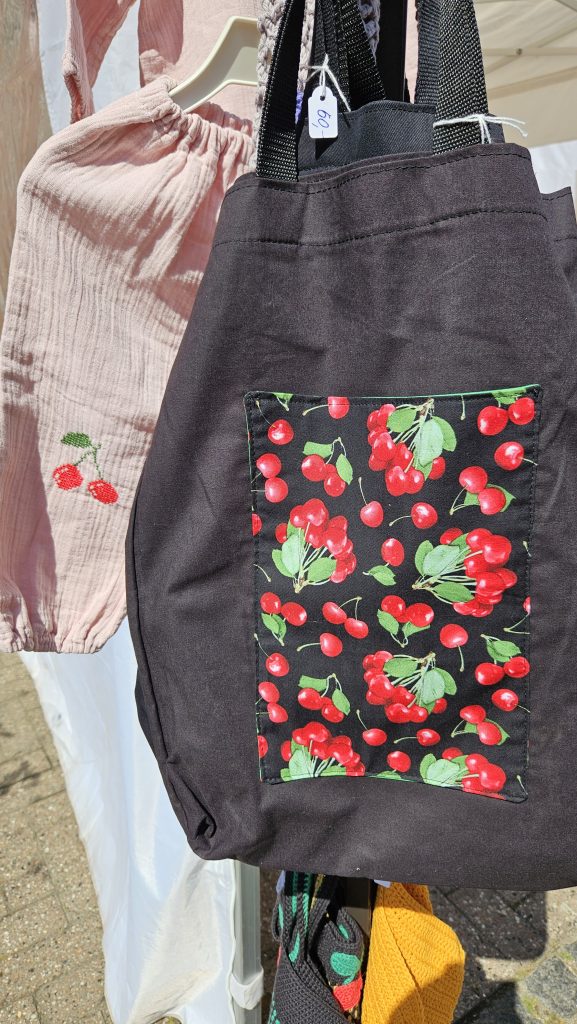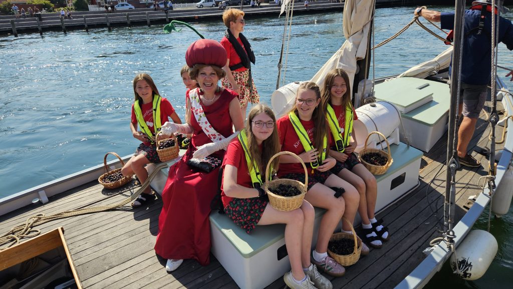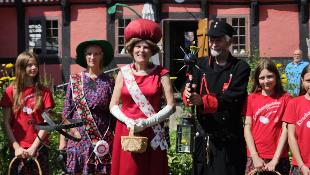 Kirsebærpigerne, der ankom i selskab med kirsebærdronning Helle Hassing, bød på smagsprøver på kirsebær, og de sort-røde bær var desuden at finde i en række boder og som ingrediens i is, kager, øl og remoulade foruden som motiv på kunsthåndværk og tekstiler. Foto: Susanne Jølck